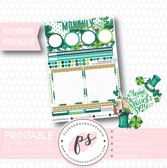 Shamrock Luck Monthly Notes Page Kit Digital Printable Planner Stickers (for use with Standard A5 Wide Planners)