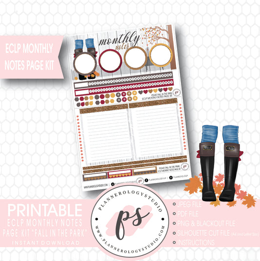 Fall in the Park Monthly Notes Page Kit Digital Printable Planner Stickers (for use with Standard A5 Wide Planners)