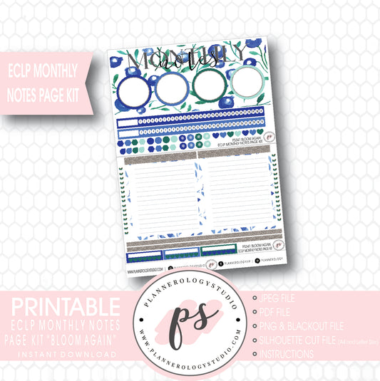 Bloom Again Monthly Notes Page Kit Digital Printable Planner Stickers (for use with Standard A5 Wide Planners)
