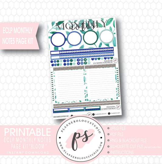 Bloom Monthly Notes Page Kit Digital Printable Planner Stickers (for use with Standard A5 Wide Planners)