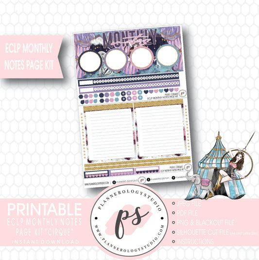Cirque Monthly Notes Page Kit Digital Printable Planner Stickers (for use with Standard A5 Wide Planners)