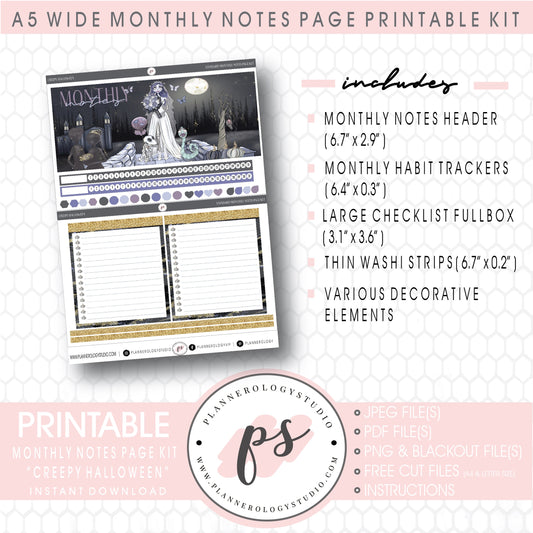 Creepy Halloween Monthly Notes Page Kit Digital Printable Planner Stickers (for use with Standard A5 Wide Planners)