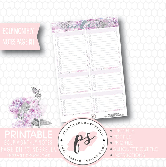Cinderella Monthly Notes Page Kit Printable Planner Stickers (for use with Standard A5 Wide Planners)