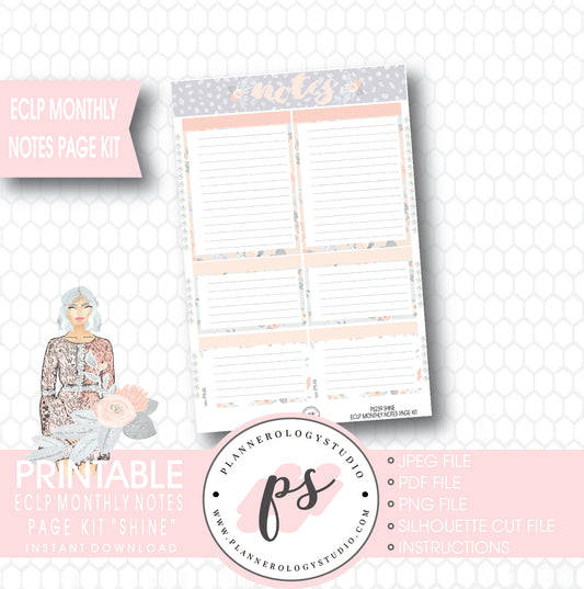 Shine Monthly Notes Page Kit Printable Planner Stickers (for use with Standard A5 Wide Planners)