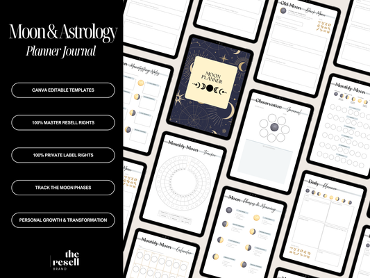 Moon & Astrology Planner Journal | 24-Page Editable Canva Template | Spiritual Journal PLR + MRR | Lunar Printable Planner Digital Download