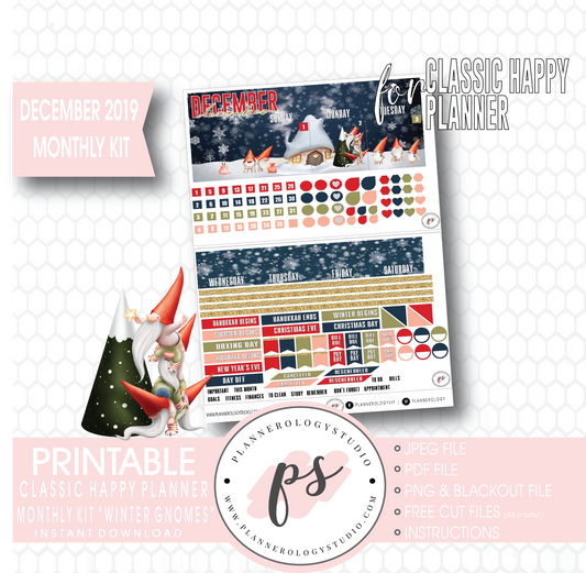 Winter Gnomes December 2019 Monthly View Kit Digital Printable Planner Stickers (for use with Classic Happy Planner)