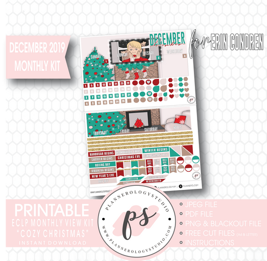 Cozy Christmas December 2019 Monthly View Kit Digital Printable Planner Stickers (for Standard A5 Wide Monthly 1.6" Width Date Boxes)