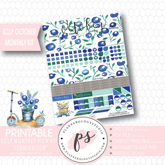 "Summer Bloom" October 2017 Monthly View Kit Printable Planner Stickers (for use with ECLP)