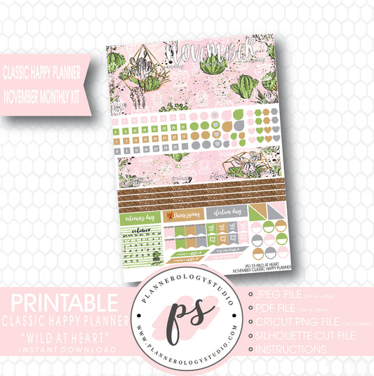 Wild at Heart Cactus November 2017 Monthly View Kit Printable Planner Stickers (for use with Classic Happy Planner)