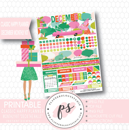 Deck the Halls Christmas 2017 December Monthly View Kit Printable Planner Stickers (for use with Classic Happy Planner)