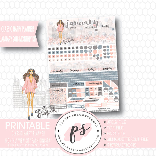 Fashionista January 2018 Monthly View Kit Printable Planner Stickers (for use with Classic Happy Planner)