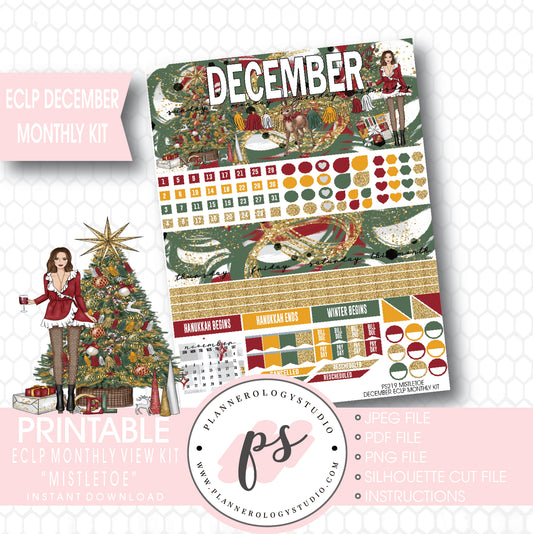 Mistletoe Christmas December 2017 Monthly View Kit Printable Planner Stickers (for use with ECLP)