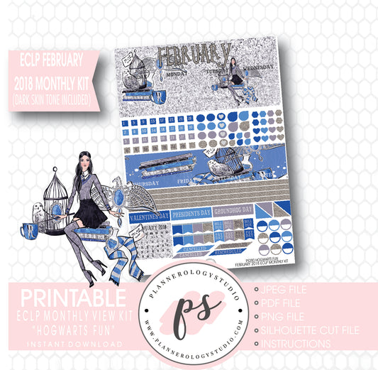 Hogwarts Fun (Harry Potter Theme) February 2018 Monthly View Kit Printable Planner Stickers (for use with ECLP) (Dark & Light Skintone)