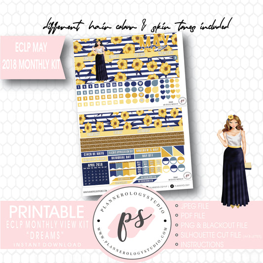 Dreams May 2018 Monthly View Kit Digital Printable Planner Stickers (for Standard A5 Wide Monthly 1.6" Width Date Boxes)