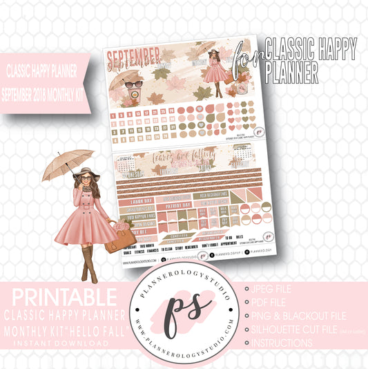 Hello Fall September 2018 Monthly View Kit Digital Printable Planner Stickers (for use with Classic Happy Planner)