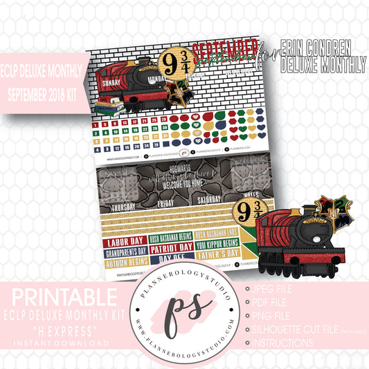 H Express (Harry Potter) September 2018 Monthly View Kit Digital Printable Planner Stickers (for use with Erin Condren Deluxe Monthly Planner)