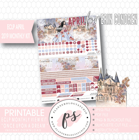 Once Upon a Dream April 2019 Monthly View Kit Digital Printable Planner Stickers (for Standard A5 Wide Monthly 1.6" Width Date Boxes)