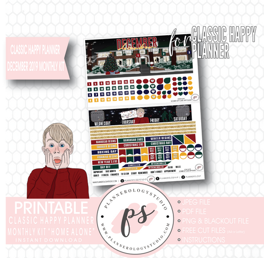 Home Alone Christmas December 2019 Monthly View Kit Digital Printable Planner Stickers (for use with Classic Happy Planner)