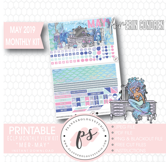 Mer-May May 2019 Monthly View Kit Digital Printable Planner Stickers (for Standard A5 Wide Monthly 1.6" Width Date Boxes)