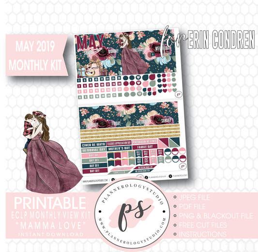 Mamma Love (Mother & Son) May 2019 Monthly View Kit Digital Printable Planner Stickers (for Standard A5 Wide Monthly 1.6" Width Date Boxes)
