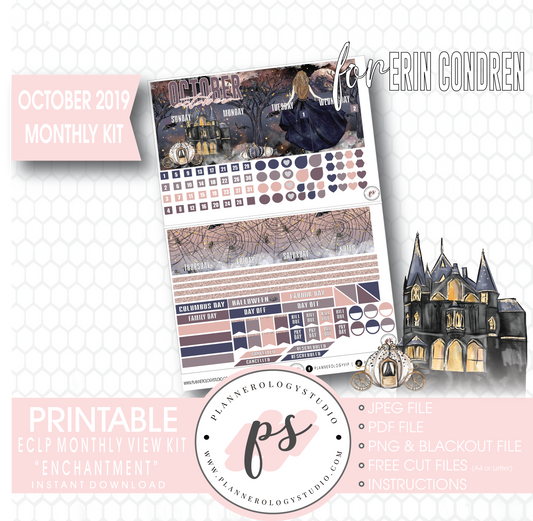 Enchantment Halloween October 2019 Monthly View Kit Digital Printable Planner Stickers (for Standard A5 Wide Monthly 1.6" Width Date Boxes)