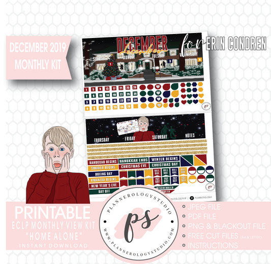 Home Alone Christmas December 2019 Monthly View Kit Digital Printable Planner Stickers (for Standard A5 Wide Monthly 1.6" Width Date Boxes)