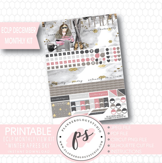 Winter Apres Ski December 2017 Monthly View Kit Printable Planner Stickers (for use with ECLP)