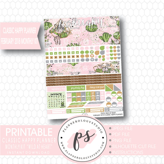 Wild at Heart February 2018 Monthly View Kit Printable Planner Stickers (for use with Classic Happy Planner)