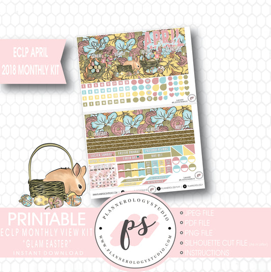 Glam Easter April 2018 Monthly View Kit Digital Printable Planner Stickers (for Standard A5 Wide Monthly 1.6" Width Date Boxes)