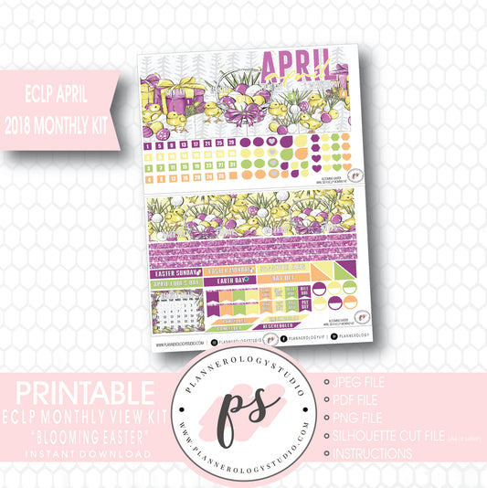 Blooming Easter April 2018 Monthly View Kit Digital Printable Planner Stickers (for Standard A5 Wide Monthly 1.6" Width Date Boxes)