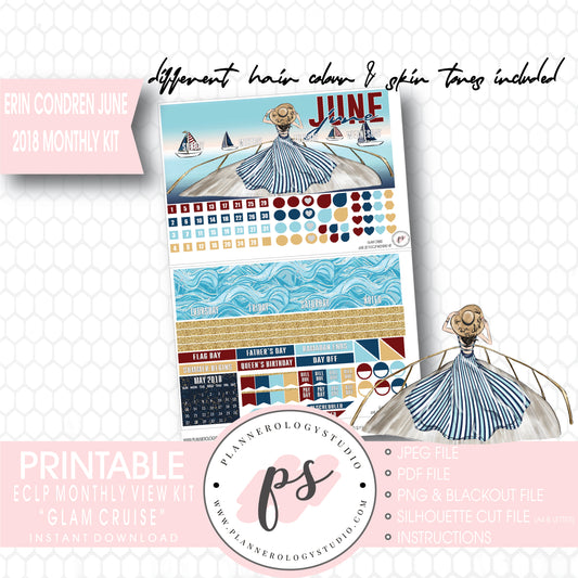 Glam Cruise June 2018 Monthly View Kit Digital Printable Planner Stickers (for Standard A5 Wide Monthly 1.6" Width Date Boxes)