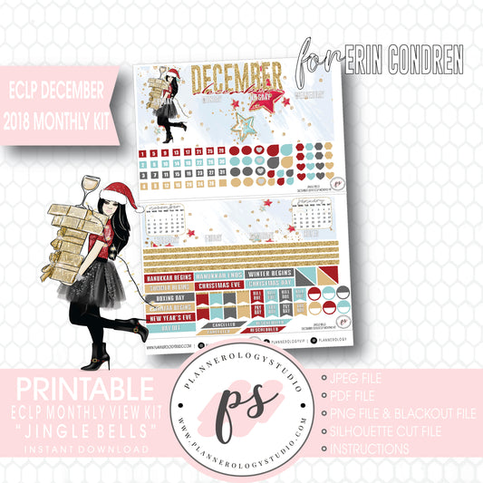 Jingle Bells Christmas December 2018 Monthly View Kit Digital Printable Planner Stickers (for Standard A5 Wide Monthly 1.6" Width Date Boxes)