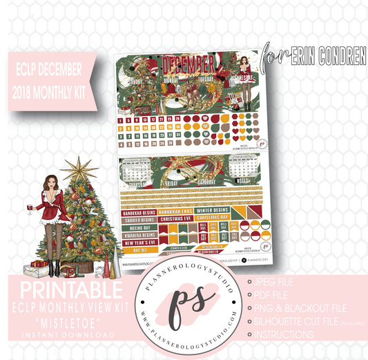 Mistletoe Christmas December 2018 Monthly View Kit Digital Printable Planner Stickers (for Standard A5 Wide Monthly 1.6" Width Date Boxes)