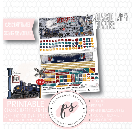 Christmas Express (The Polar Express) December 2018 Monthly View Kit Digital Printable Planner Stickers (for use with Classic Happy Planner)