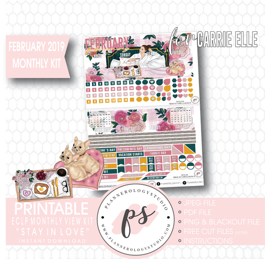 Stay in Love Valentine's Day February 2019 Monthly View Kit Digital Printable Planner Stickers (for use with Carrie Elle Planner)