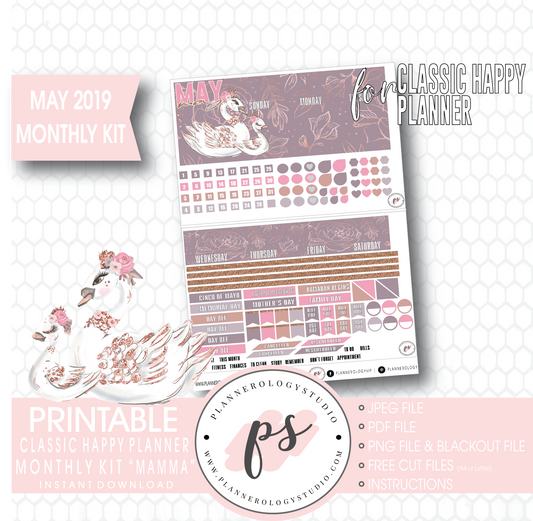 Mamma (Mother's Day) May 2019 Monthly View Kit Digital Printable Planner Stickers (for use with Classic Happy Planner)
