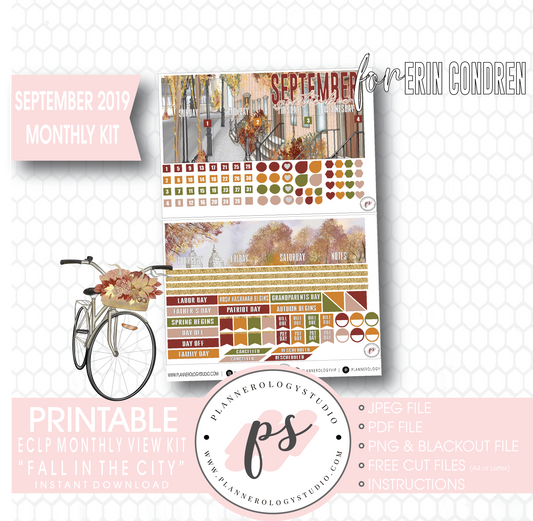 Fall in the City September 2019 Monthly View Kit Digital Printable Planner Stickers (for Standard A5 Wide Monthly 1.6" Width Date Boxes)