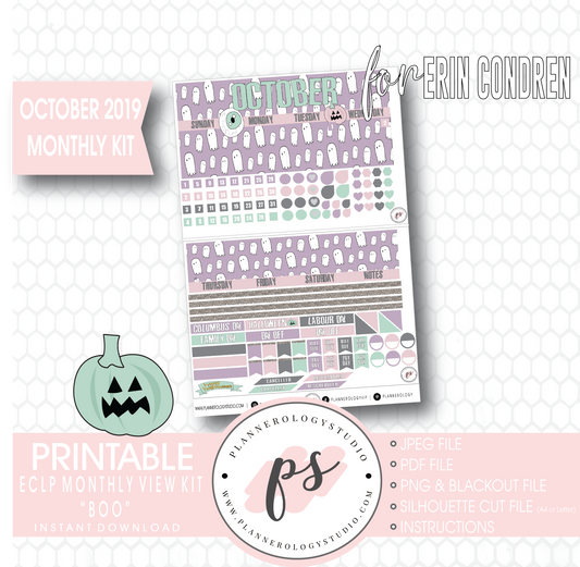 Boo October 2019 Halloween Monthly View Kit Printable Planner Stickers (for Standard A5 Wide Monthly 1.6" Width Date Boxes)