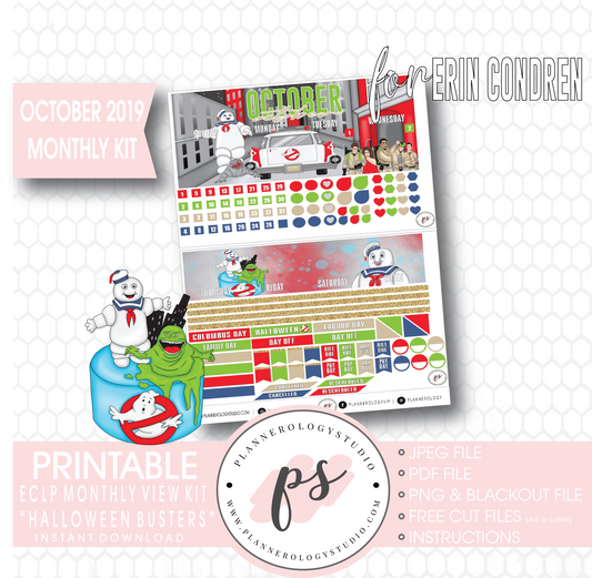 Halloween Busters October 2019 Monthly View Kit Printable Planner Stickers (for Standard A5 Wide Monthly 1.6" Width Date Boxes)