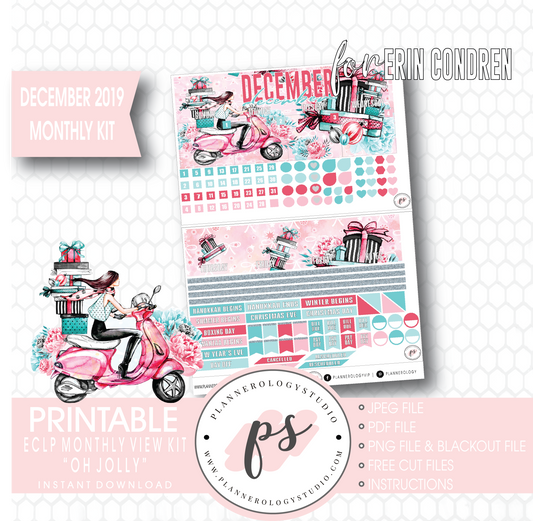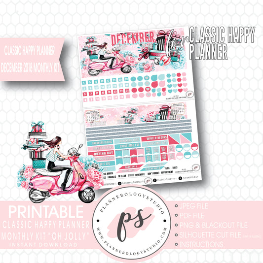 Oh Jolly Christmas December 2018 Monthly View Kit Digital Printable Planner Stickers (for use with Classic Happy Planner)