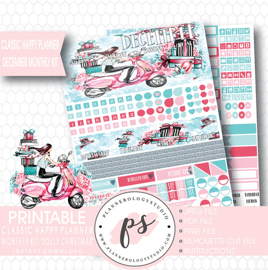 Jolly Christmas December 2017 Monthly View Kit Printable Planner Stickers (for use with Classic Happy Planner)