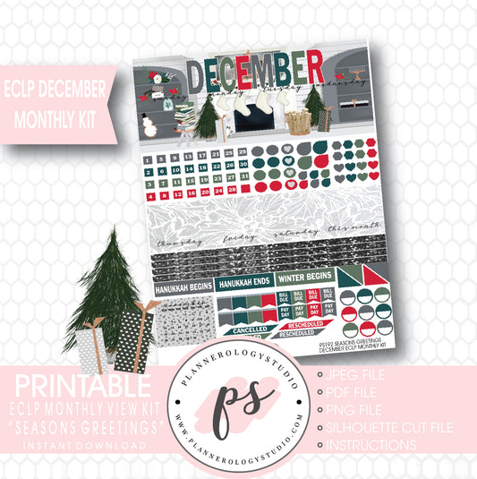 Seasons Greetings Christmas December 2017 Monthly View Kit Printable Planner Stickers (for use with ECLP)
