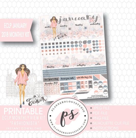 Fashionista January 2018 Monthly View Kit Printable Planner Stickers (for use with ECLP)