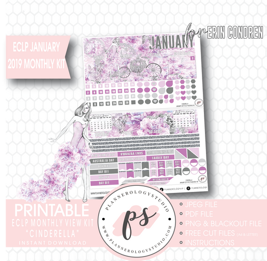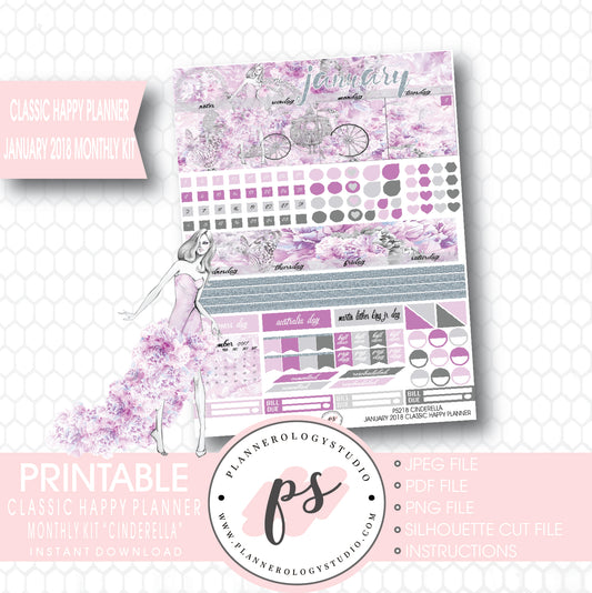 Cinderella January 2018 Monthly View Kit Printable Planner Stickers (for use with Classic Happy Planner)
