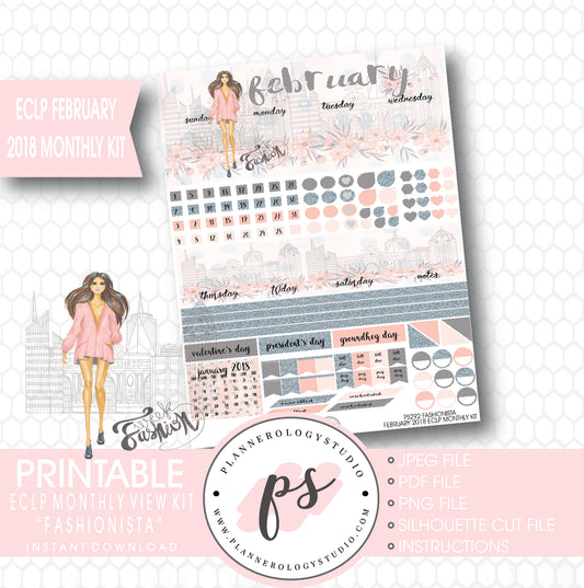 Fashionista February 2018 Monthly View Kit Digital Printable Planner Stickers (for use with ECLP)