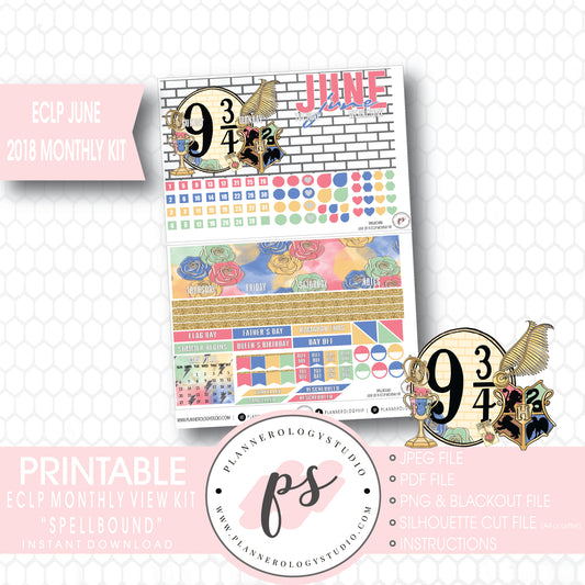 Spellbound (Harry Potter) June 2018 Monthly View Kit Digital Printable Planner Stickers (for Standard A5 Wide Monthly 1.6" Width Date Boxes)