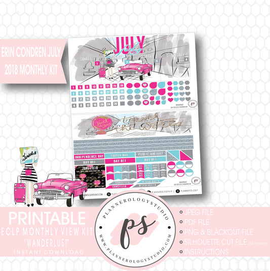 Wanderlust July 2018 Monthly View Kit Digital Printable Planner Stickers (for Standard A5 Wide Monthly 1.6" Width Date Boxes)