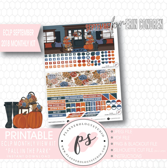 Fall Dusk September 2018 Monthly View Kit Digital Printable Planner Stickers (for Standard A5 Wide Monthly 1.6" Width Date Boxes)