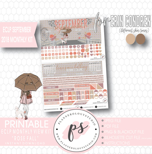 Rose Fall September 2018 Monthly View Kit Digital Printable Planner Stickers (for Standard A5 Wide Monthly 1.6" Width Date Boxes)