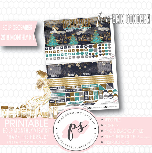 Hark the Herald Christmas December 2018 Monthly View Kit Printable Planner Stickers (for use with ECLP)